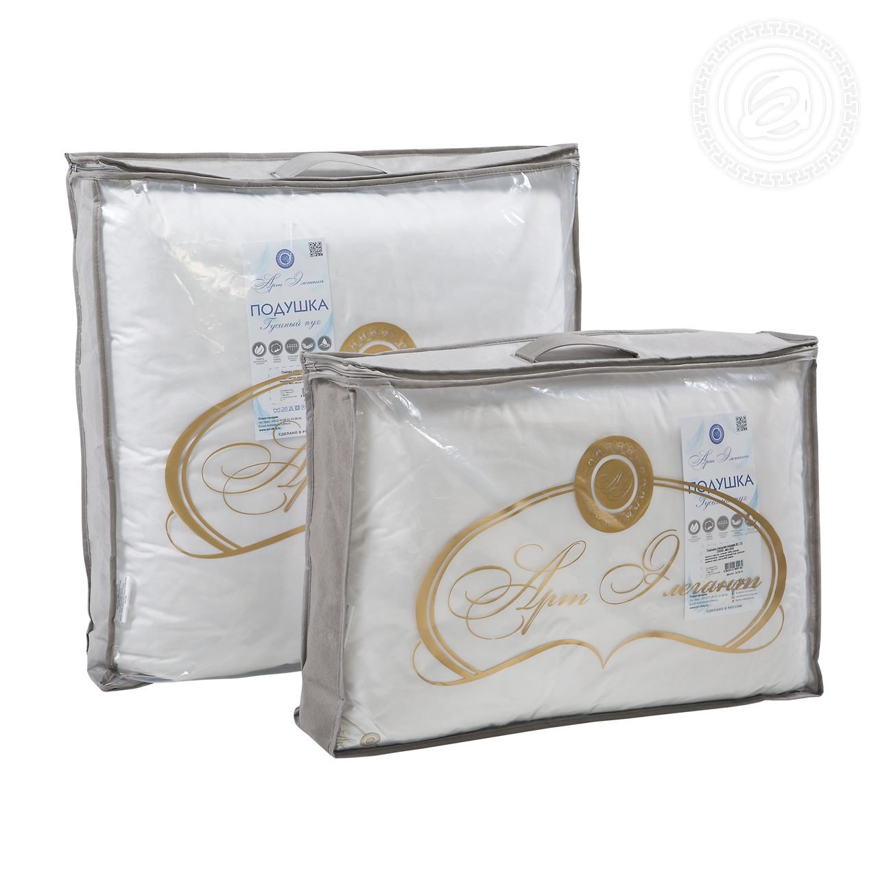 Состав: Наполнитель: Внешняя камера - серый гусиный пух, внутренняя камера - мелкое гусиное шейное перышко. Плотность: 1100 гр/м2. Чехол: Чехол с кантом - сатин (100% хлопок).