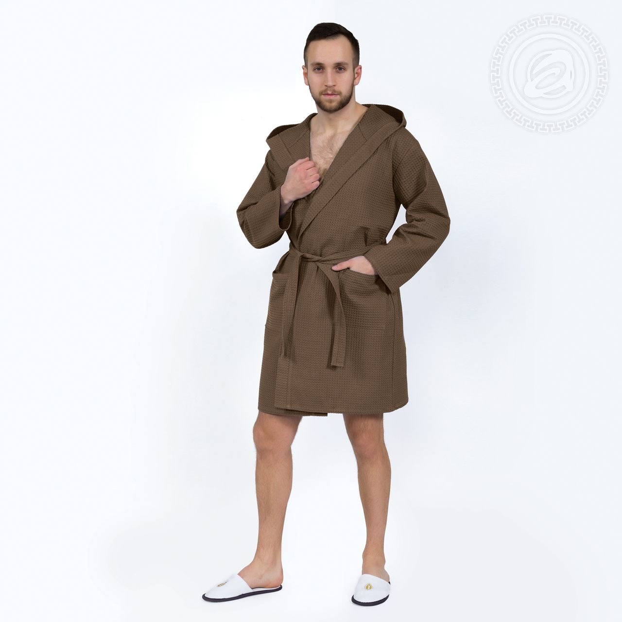 Описание: Мужские халаты из вафельного полотна созданы для спортсменов и любителей бань и саун. Излюбленный мужчинами темный коричневый цвет будет оценен по достоинству. На сайте вы найдете две модели халатов – с капюшоном и без.Халаты изготовлены из вафельного крупноузорчатого полотна "Итальянского дизайна", предназначены не только для домашнего применения, но и прекрасно подходят для бань, гостиниц, саун и SPA-салонов. Они долговечны и не садятся после многократных стирок, сохраняя первоначальную форму и вид. Легкие и приятные к телу, прекрасно впитывают влагу, позволяя коже дышать.Халат банный: прямого покроя. Рукав втачной, низ рукава обрабатывается швом в подгибку. Карманы накладные, верхний срез кармана также обрабатывается швом в подгибку. По линии горловины пришивается капюшон. Край полочек и капюшон обрабатываются обтачкой по всей длине. В боковые швы на линии талии вшиваются шлевки под пояс.Пояс круговой. Под капюшоном по центру спинки вшивается вешалка (с лицевой стороны). Низ изделия обрабатывается швом в подгибку.