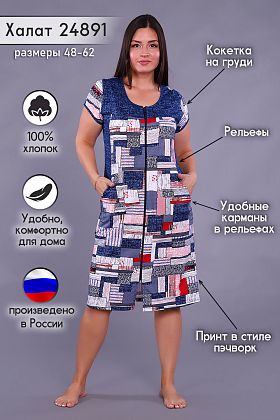 Халатик классный. Сшит очень хорошо. Материал приятный к телу. Напоминает детский мягонький. Правда оказался велик. Заказала L 48,а на этикетке 50.буду продавать и заказывать меньший размер. Товар и продавца рекомендую.