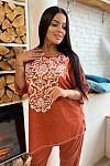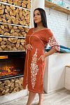 Халатик классный. Сшит очень хорошо. Материал приятный к телу. Напоминает детский мягонький. Правда оказался велик. Заказала L 48,а на этикетке 50.буду продавать и заказывать меньший размер. Товар и продавца рекомендую.