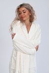 Халатик классный. Сшит очень хорошо. Материал приятный к телу. Напоминает детский мягонький. Правда оказался велик. Заказала L 48,а на этикетке 50.буду продавать и заказывать меньший размер. Товар и продавца рекомендую.